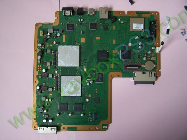La mise à jour 4.40 terminée, rendez-vous dans : Paramètres -> Information système pour contrôler que tout s’est bien passé et que la console est bien en version 4.40 Etape 2 : Démontage de la console, pose de l’E3 flasher et dump de la NOR1. Démontage de la ps3J’ai utilisé une PS3 2504 pour ce tuto, le démontage des autres modèles varie un petit peu, mais le principe reste le même. Pour plus de détails, télécharger le PDF de démontage sur le site du constructeur : www.e3-tech.net/ Allez hop, on retourne la console, on retire les caches + les vis qui sont dessous. Ensuite on fait glisser le cache du disque dur et on le retire. Une fois les vis retirées, enlever le capot Débrancher les 2 connecteurs, dévisser les 2 vis et retirer le bloc d’alimentation. Déclipser le panneau on/off Eject et retirer la nappe souple. Dévisser la vis, retirer les 3 nappes de leur connecteur, déposer le lecteur : attention à la nappe de données sous le lecteur ! Débrancher le câble du ventilateur ainsi que les câbles wifi/BT, dévisser les 5 vis de maintient de la carte mère Sortir la carte mère de la coque Dévisser les 9 vis et déposer la cache métallique. Retirer le cache inférieur pour ne garder que la carte mère